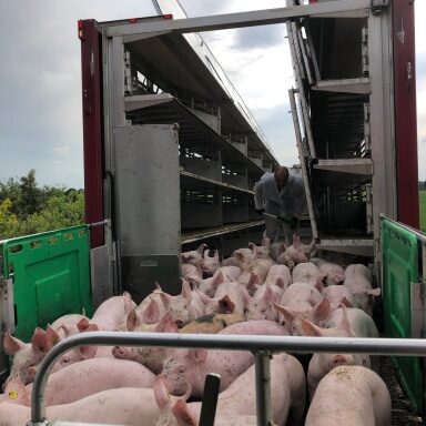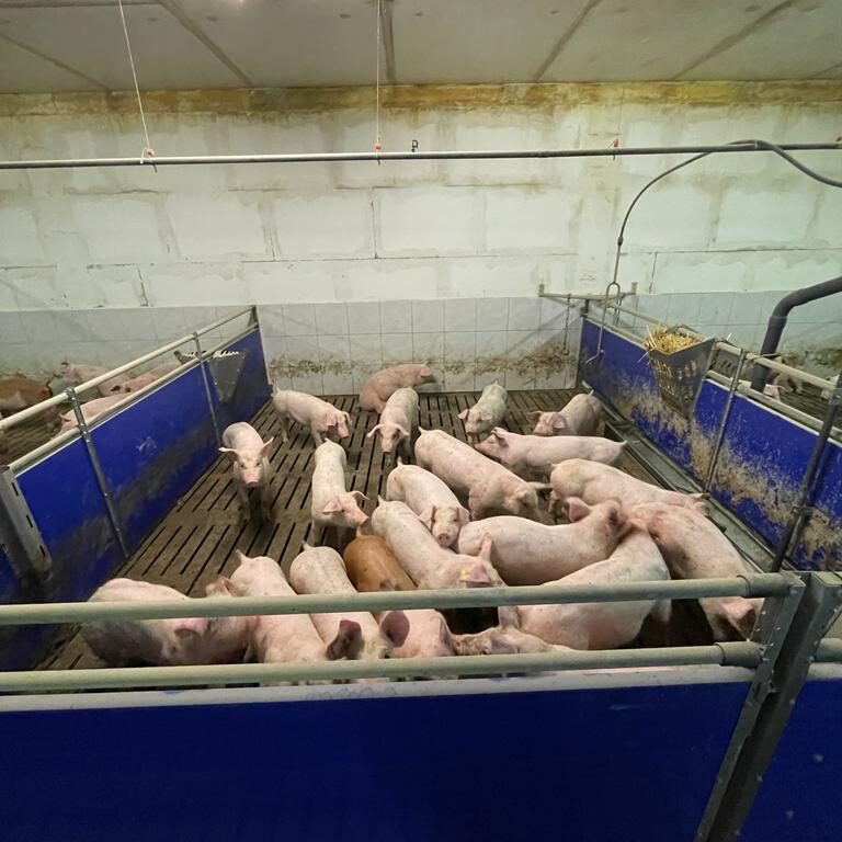 Wir kaufen unsere Ferkel über die Viehvermarktungsgemeinsachft Weser-Hunte von einem dänischen Kollegen. Diese Tiere kommen mit 28 kg bei uns an und werden mit 122kg zum Schlachthof vermarktet.